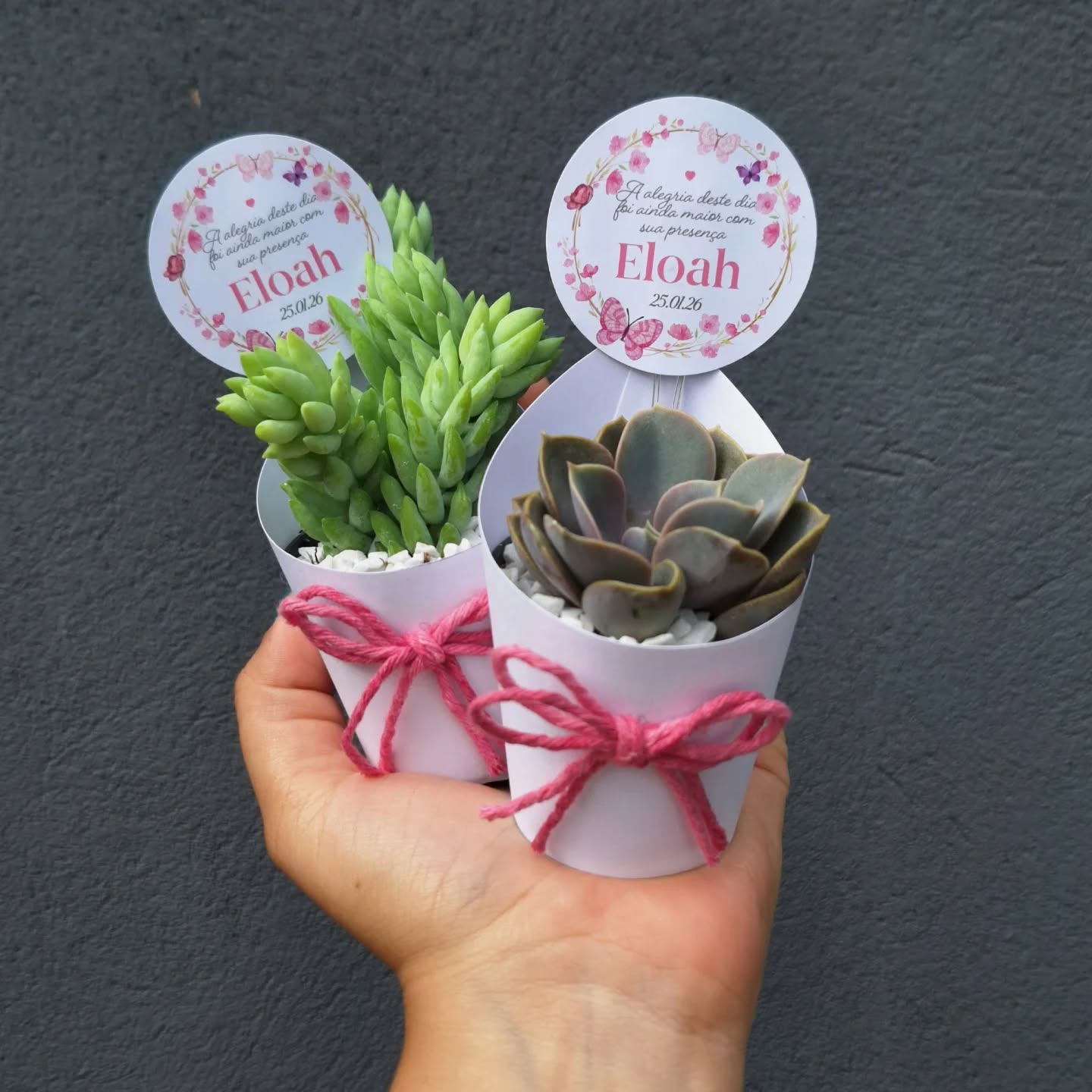 Realizei o pedido de 1.500 suculentas personalizadas para um evento corporativo, com um prazo curto para entrega. Mesmo sendo desafiador, a equipe me auxiliou em todo o processo de criação e desenvolvimento do design gráfico dos rótulos. As suculentas vieram impecáveis, bem embaladas e no prazo estipulado. A educação, a prestatividade e o cuidado que tiveram com o atendimento me deixou encantada com a empresa. Com toda certeza, superaram minhas expectativas e indico de olhos fechados.