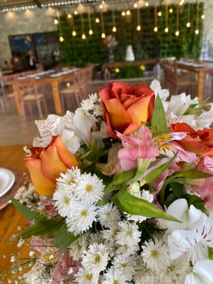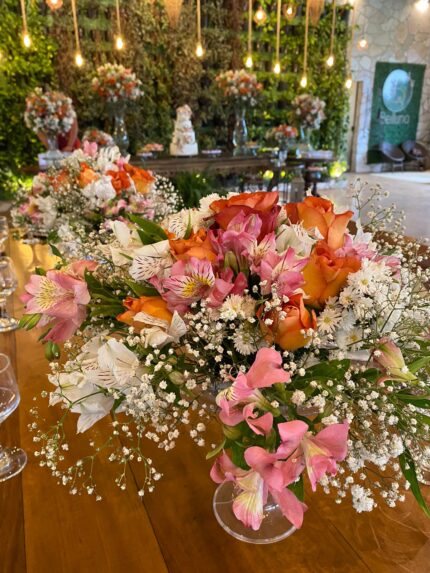 Transforme a decoração da sua mesa de jantar com o nosso Mix Floral, ideal para mesas de 6 lugares. Perfeito para eventos especiais, almoços, jantares ou recepções, este arranjo traz um toque sofisticado e delicado ao ambiente.