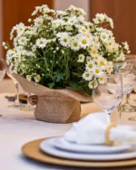 Centro de mesa com Margaridas – Arranjo para mesa de convidados