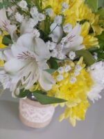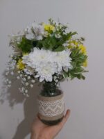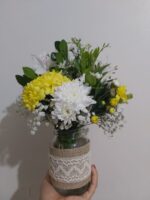 uma combinação perfeita entre o charme rústico do acabamento no vidro e a delicadeza das flores. Cada arranjo transborda encanto, trazendo um toque vintage e acolhedor para qualquer ocasião.
