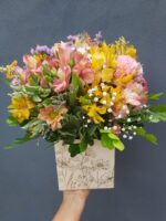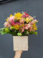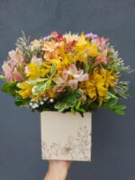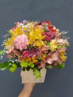 - Arranjo elaborado com astromélias (variedades disponíveis: amarela, branca, rosada, champanhe, vermelha, entre outras)