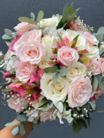 - Cabo envolto em fita de cetim rosa com acabamento delicado e caule descoberto para garantir a conservação ideal até o grande momento.