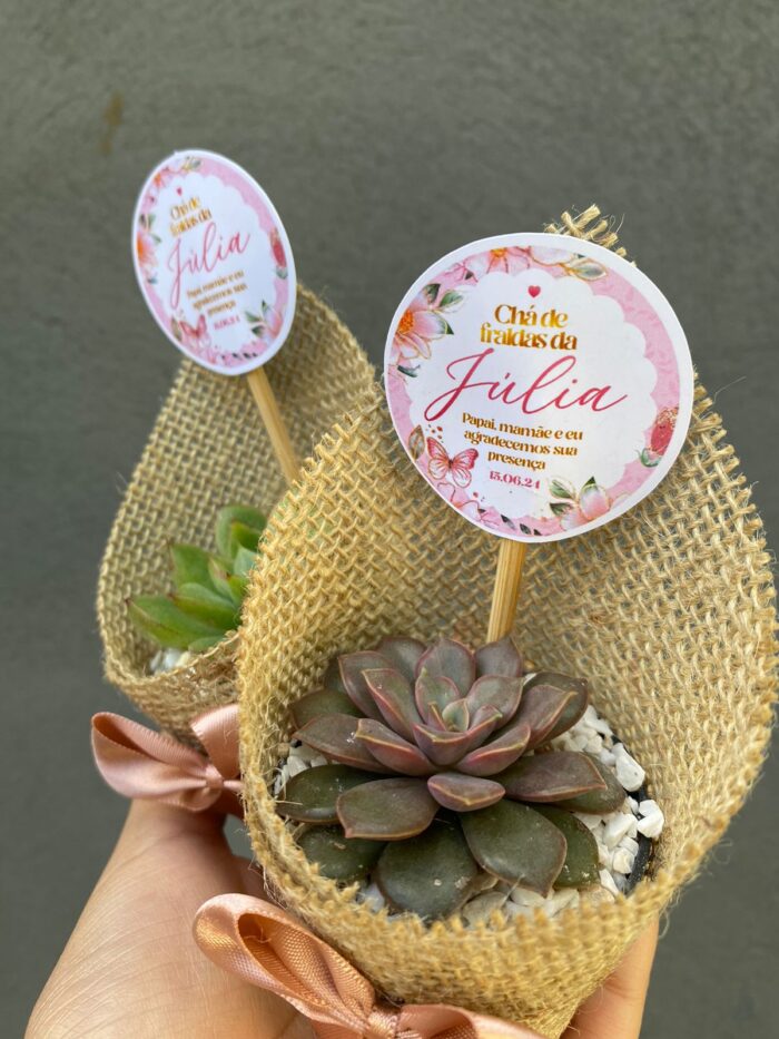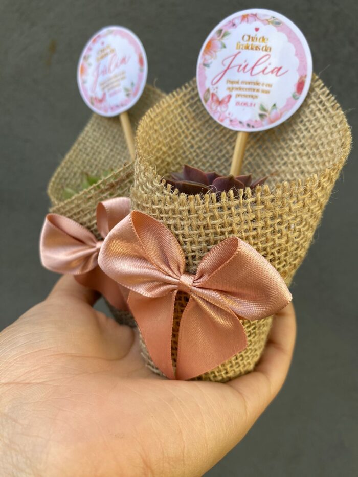 Presenteie com um toque especial da natureza! Cada vasinho é decorado com rótulo em juta e lacinho de cetim, acompanhado de uma tag personalizada para diversas ocasiões: chá revelação, maternidade, casamento, eventos corporativos e agradecimento.