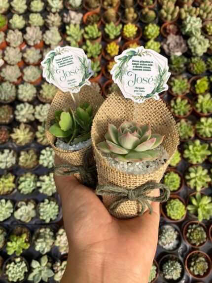 Surpreenda seus convidados com uma lembrancinha exclusiva para Chá Revelação! Nossas suculentas embaladas com rótulo de juta e tag personalizada são o toque perfeito para tornar esse momento ainda mais especial. 🌱