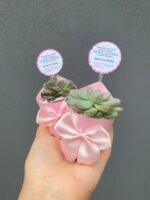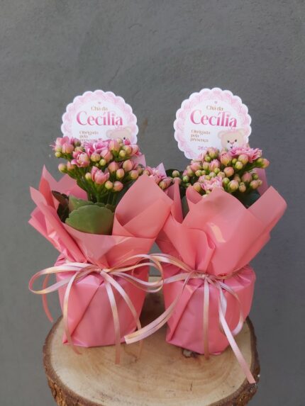 Presenteie com um toque especial da natureza! Cada vasinho é decorado com rótulo Offset Rosa e lacinho de cetim, acompanhado de uma tag personalizada para diversas ocasiões: chá revelação, maternidade, casamento, eventos corporativos e agradecimento.