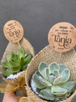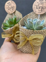 Presenteie com um toque especial da natureza! Cada vasinho é decorado com rótulo Juta e laço de voil, acompanhado de uma tag personalizada para diversas ocasiões: chá revelação, maternidade, casamento, eventos corporativos e agradecimento.