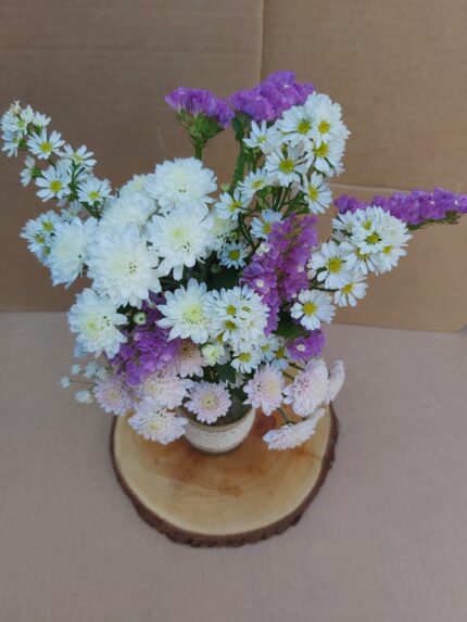 - Crisântemo: lilás, branco, rosa claro ou amarelo